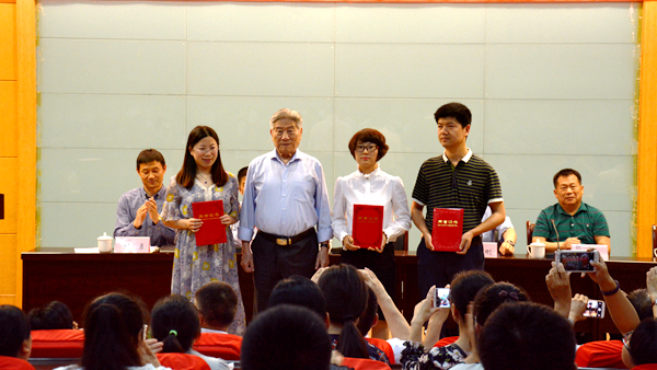 刘宝盈宣读2018年“赵鹏大院士奖教金”获奖教师名单。获奖教师代表乔成芳作表态发言,表达了自己获奖的激动心情,以及自己从事教学科研工作的感受及决心。仪式现场掌声阵阵,与会师生纷纷表示很受鼓舞,未来将更加努力,不断提升科研水平,努力取得更多科研成果,用实际行动答谢赵院士及其团队的指导和支持,用优异成绩为我校“双一流”建设添砖加瓦!