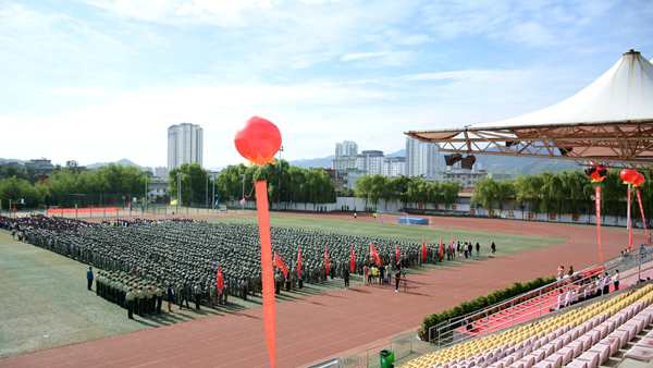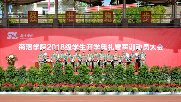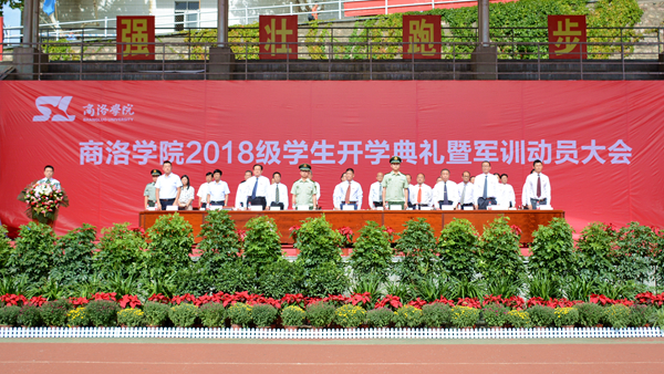 未觉池塘春草梦,阶前梧叶已秋声。9月7日上午,我校2018级学生开学典礼暨军训动员大会在学校体育场隆重举行。校长范新会、纪委书记王思怀、副校长魏书堂、党委副书记彭虎军,副校长刘宝盈、刘勇,武警商洛支队副参谋长、军训团团长吕喆少校,武警商洛支队执勤一大队大队长、军训团副团长郭伟少校,2005届校友、蓝田县汤峪镇高堡初级中学校长吴楠出席大会。各二级学院(部)党政主要负责人、有关职能部门负责人及3500余名2018级新生参加大会。大会由彭虎军主持。