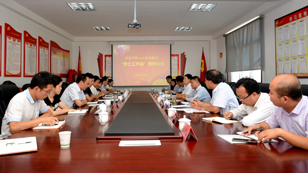 范新会、景小青共同为“博士工作站”揭牌。刘宝盈对我校与山阳高新区建立博士工作站做了详细安排,冀博做总结讲话,崔新成致欢迎词,我校教师陈垚博士做了表态发言。