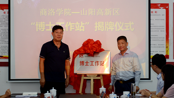 9月7日,商洛学院—山阳高新区“博士工作站”在山阳县域工业集中区正式揭牌。校长范新会、副校长刘宝盈,商洛市科技局副局长冀博,山阳县人大常委会副主任景小青,校科技处处长王新军、化材学院院长周春生及山阳高新区管委会主任崔新成等出席揭牌仪式,我校加入“博士工作站”的5名博士,山阳县委组织部、县科教局、集中区管委会相关人员及园区部分企业负责人参加了揭牌仪式。