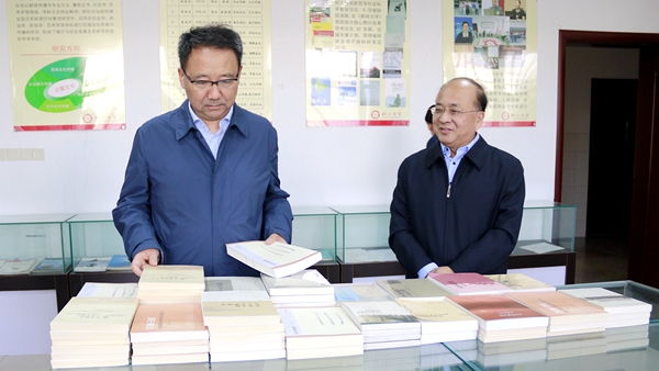 龙治刚一行在李喆的陪同下参观了临沂大学红色馆和重点科研创新平台等处。