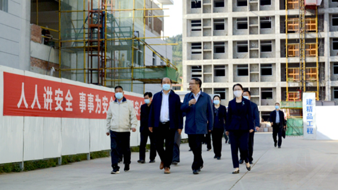 刘建林一行深入丹江校区实训中心装饰装修工程、学生宿舍楼工程、秦岭矿产资源综合利用工程中心2号楼工程、秦岭资源植物创新利用工程中心工程及标准田径场等工程项目工地,实地察看各建设项目进展情况,详细了解了丹江校区建设管理和疫情防控工作开展情况。