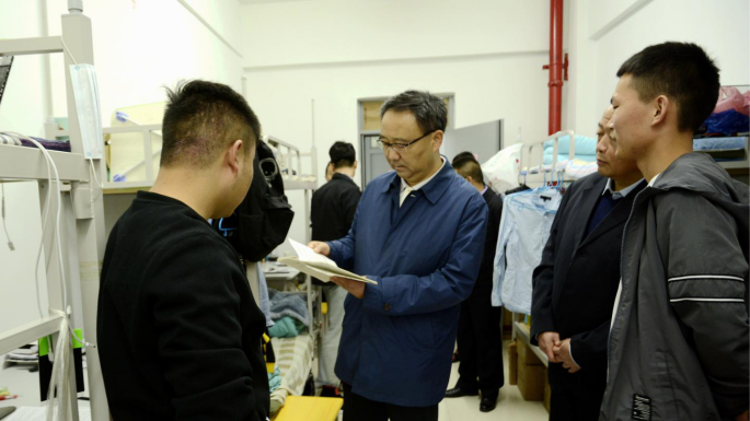 检查中,龙治刚与同学们亲切交流,询问他们的学习生活情况,关心他们的人生理想和职业发展,鼓励他们勤于修身、俭以养德、严于律己,以梦为马、不负韶华,在最美好的年纪,用汗水浇灌盎然的青春希望,用奋斗书写最美的人生篇章。