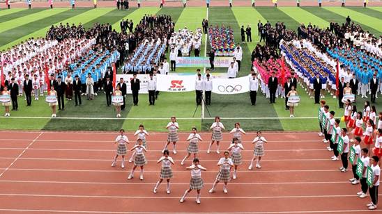 校长范新会致开幕词并宣布运动会开幕。副校长刘宝盈主持开幕式。