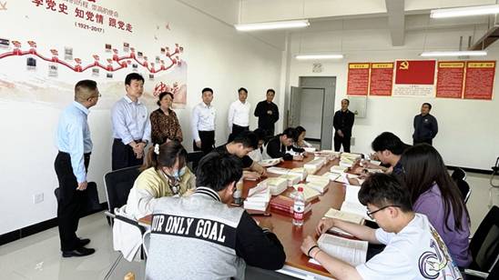 督导检查期间,指导组听取了学校工作汇报,实地考察了我校商洛红色文化资料馆、商洛文化暨贾平凹研究中心及艺术展厅,深入马克思主义学院查看党史学习教育相关资料,了解工作特色亮点,走访了电信学院、化材学院团总支青年阅读角,检查指导师生党史学习教育开展情况。