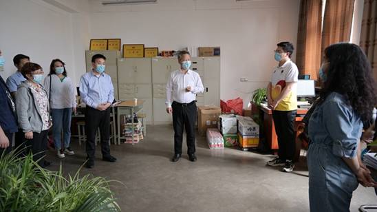 4月13日,校党委书记张志昌、校长范新会、党委副书记彭虎军,副校长王新军、郭瑾分别前往北新街校区和丹江校区各相关部门和二级学院,看望慰问坚守在疫情防控前沿的工作人员,详细了解相关部门、一线工作开展情况,并为在岗人员送去工会发放的慰问品。