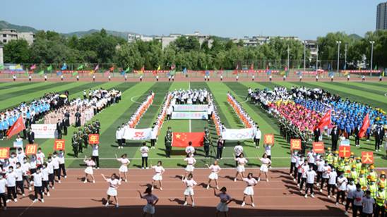 张志昌宣布运动会开幕,范新会致开幕词,刘宝盈主持本次开幕式。运动员代表王帅和裁判员代表何佳佳分别做了宣誓。