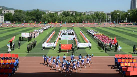 伴随着激昂的《运动员进行曲》,国旗护卫队、彩旗方队、花环方队,裁判员方队、各二级学院和教职工代表组成的15个方队依次入场,他们以昂扬的姿态,迈着整齐稳重、铿锵有力的步伐走过主席台。