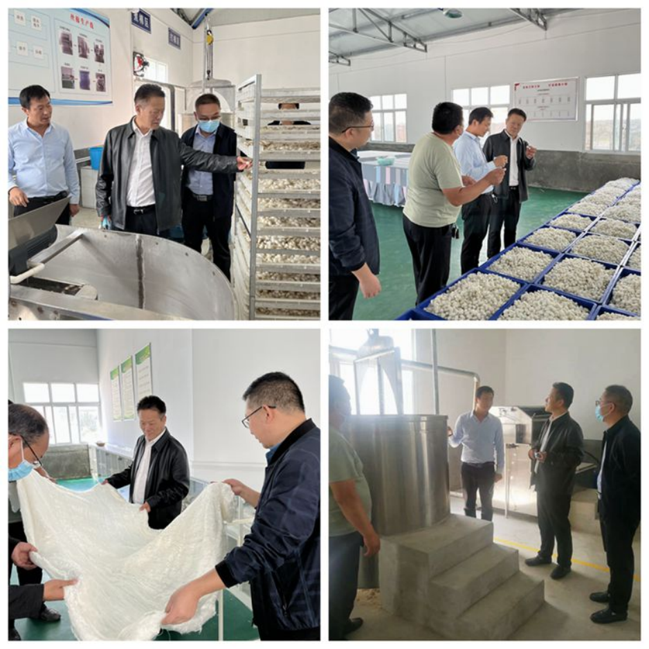 座谈会结束后,张志昌先后前往村蚕桑文化展示中心、蚕丝被加工厂,深入调研村蚕桑产业的发展和产品深加工情况。