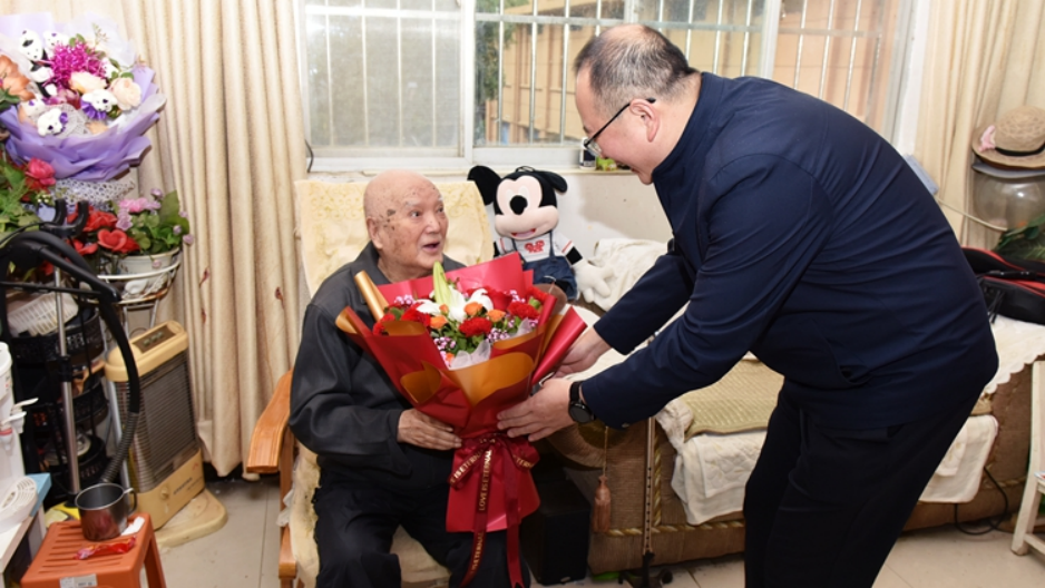 10月4日是传统佳节重阳节。为弘扬中华民族尊老敬老传统美德,关心关爱广大老教师、老同志,当天上午,副校长郭瑾看望慰问我校90岁以上退休老同志,送去校党委的关怀与祝福,倾听老同志对推动学校高质量发展的意见和建议。离退休工作处负责人陪同慰问。