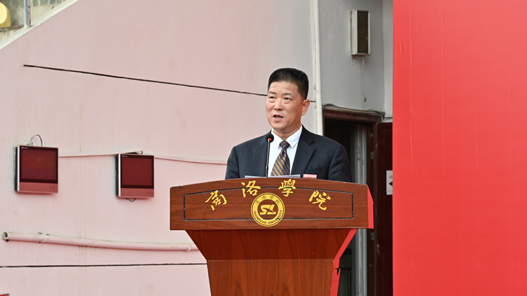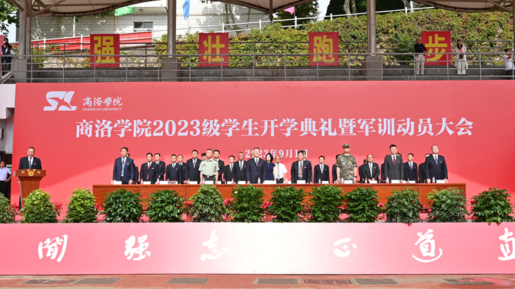 云天收夏色,木叶动秋声。9月1日上午,我校隆重举行2023级新生开学典礼暨军训动员大会。校领导张志昌、范新会、刘勇、刘宝盈、王新军、郭瑾,商州区人民武装部上校部长周武强、中国人民武装警察部队商洛支队中校参谋长朱鹏波出席大会。各二级学院(部)党政主要负责人及有关职能部门负责人、2023级新生和辅导员参加大会。大会由副校长刘宝盈主持。