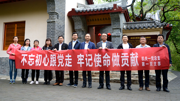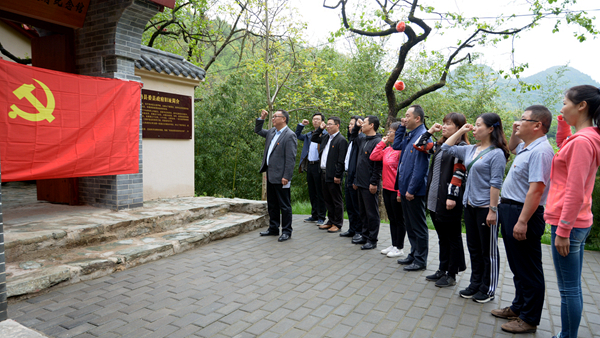 5月5日,机关一党总支第一党支部全体党员赴北宽坪革命旧址,缅怀李先念等老一辈无产阶级革命家及豫鄂陕革命根据地的光辉历史,重温入党誓词,开展“不忘初心跟党走,牢记使命做贡献”主题党日活动。